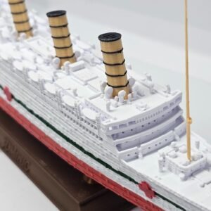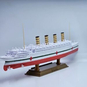 Esta miniatura em escala 1:750 com 36,6 cm de comprimento recria fielmente o visual do Aquitania em sua configuração de 1915, marcada pela imponência do casco e pelas linhas majestosas que o colocaram entre os transatlânticos mais admirados de sua geração.