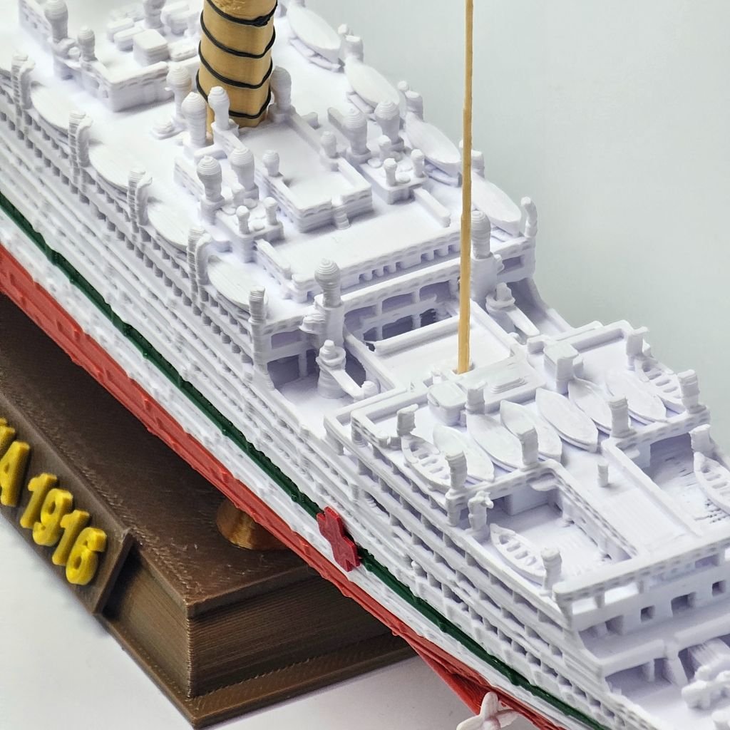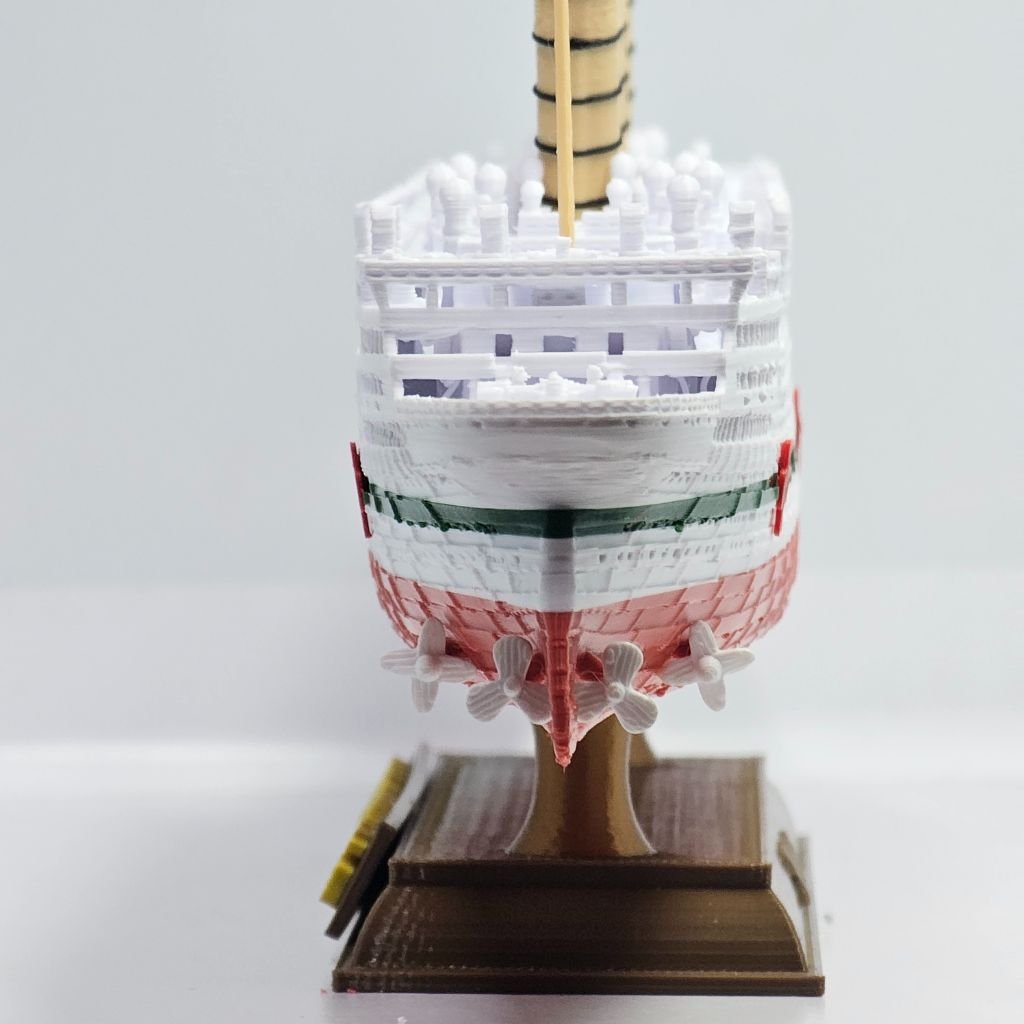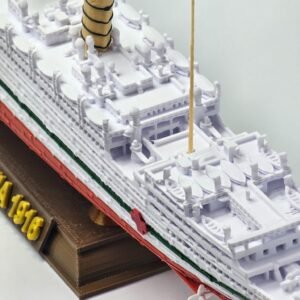 Produzida em plástico PLA de alta resistência, a peça possui cores permanentes, sem pintura, garantindo que não descasque ou desbote com o tempo. Um modelo que une memória histórica, beleza e durabilidade, ideal para colecionadores e apaixonados pela era dourada dos grandes liners.