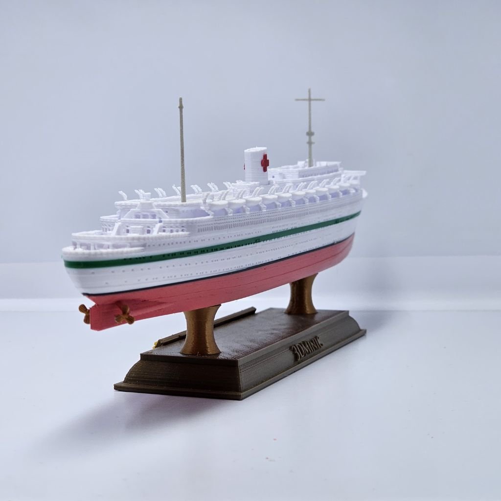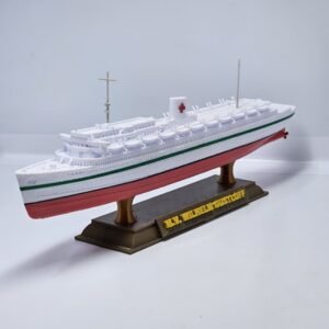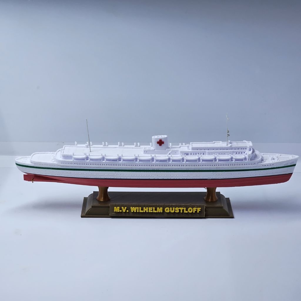 O MV Wilhelm Gustloff, antes de sua trágica história como transporte militar, também serviu como navio-hospital durante a Segunda Guerra Mundial, levando a bordo a esperança de salvar vidas em meio ao conflito. Mais tarde, em 1945, seria afundado por um submarino soviético, resultando em mais de 9 mil mortes, no maior desastre marítimo já registrado. Esta miniatura homenageia sua memória nessa fase menos lembrada, mas igualmente marcante, com acabamento refinado e riqueza de detalhes.