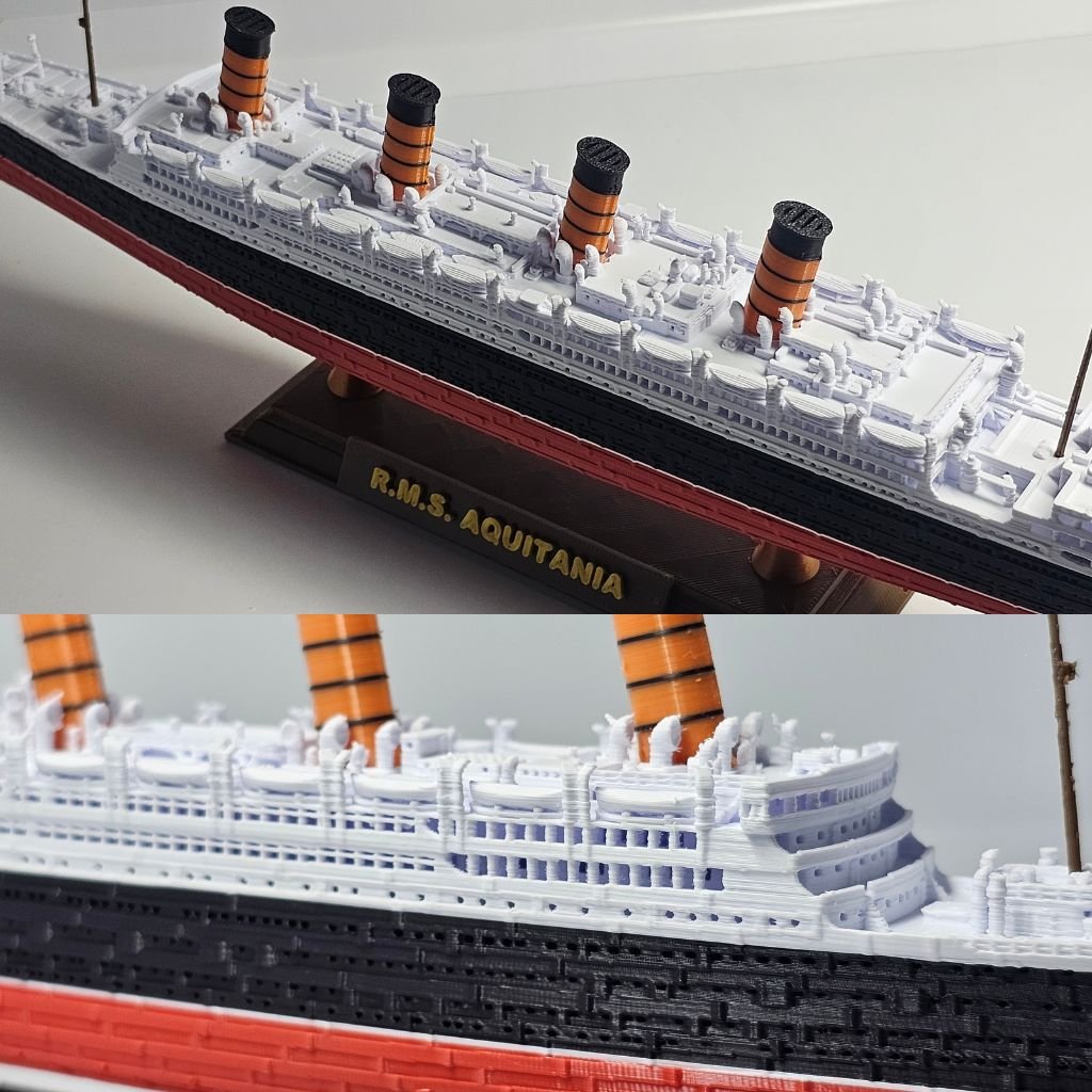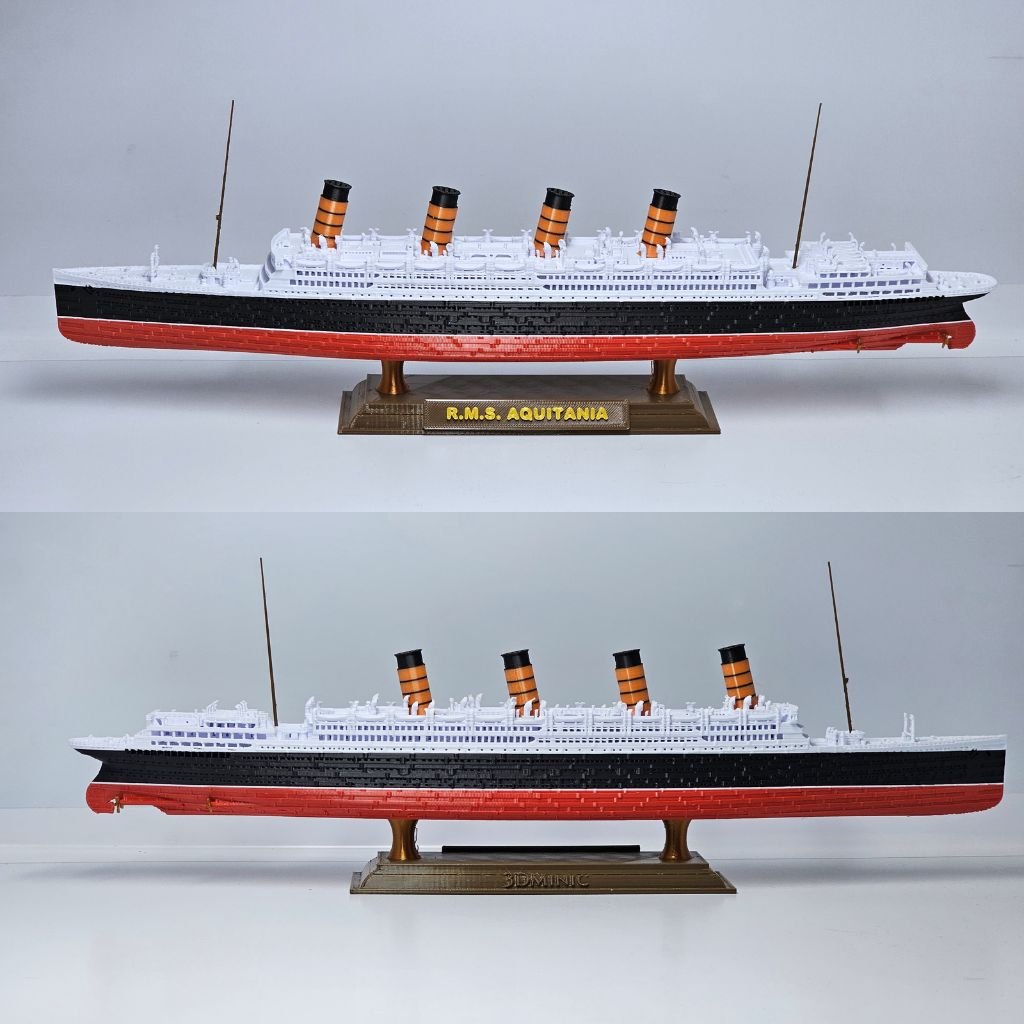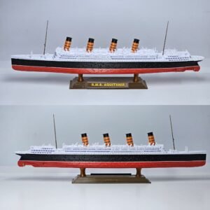 Esta miniatura em escala 1:750 com 36,6 cm de comprimento recria com fidelidade o Aquitania em duas versões marcantes de sua história: