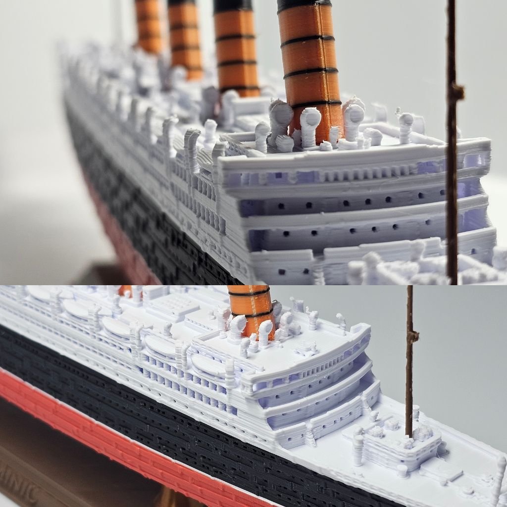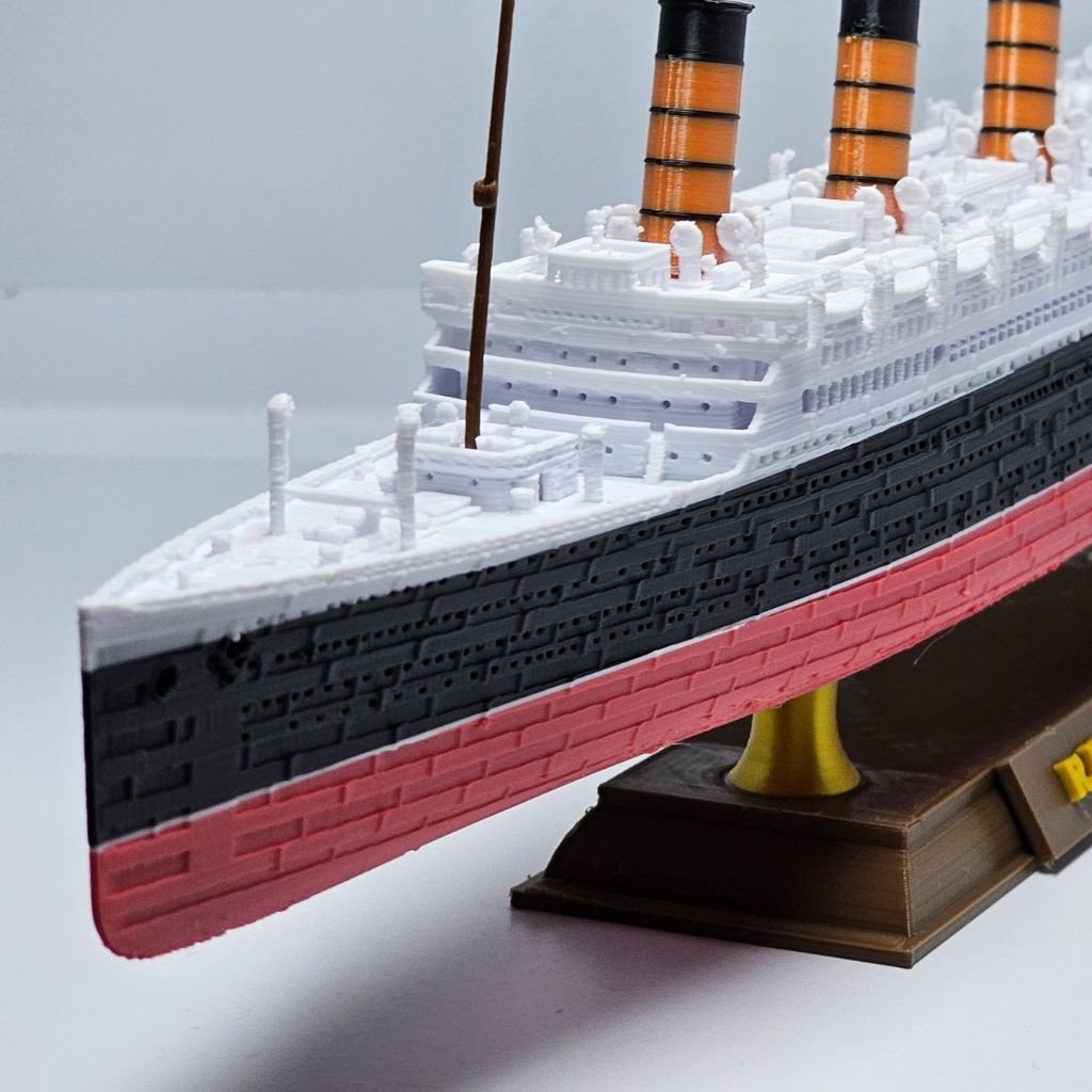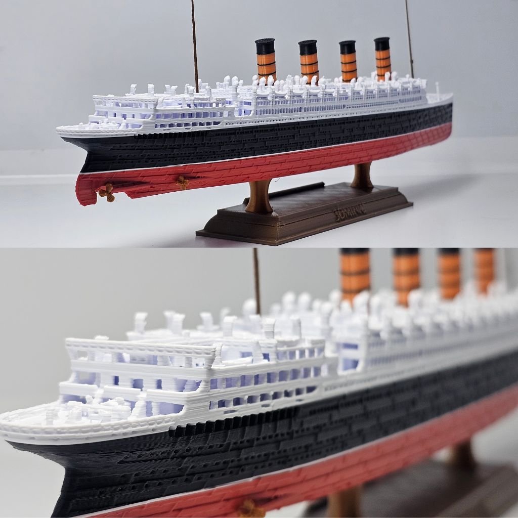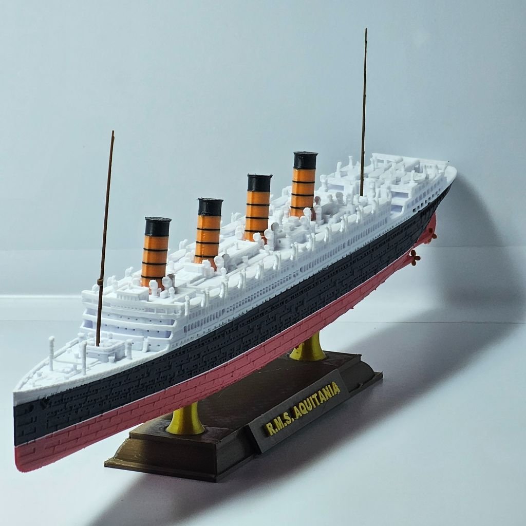 Produzido em plástico PLA de alta resistência, o modelo possui cores permanentes, sem pintura, garantindo que não descasque ou desbote. Uma peça de destaque para colecionadores que apreciam a fidelidade histórica e as transformações das grandes embarcações.