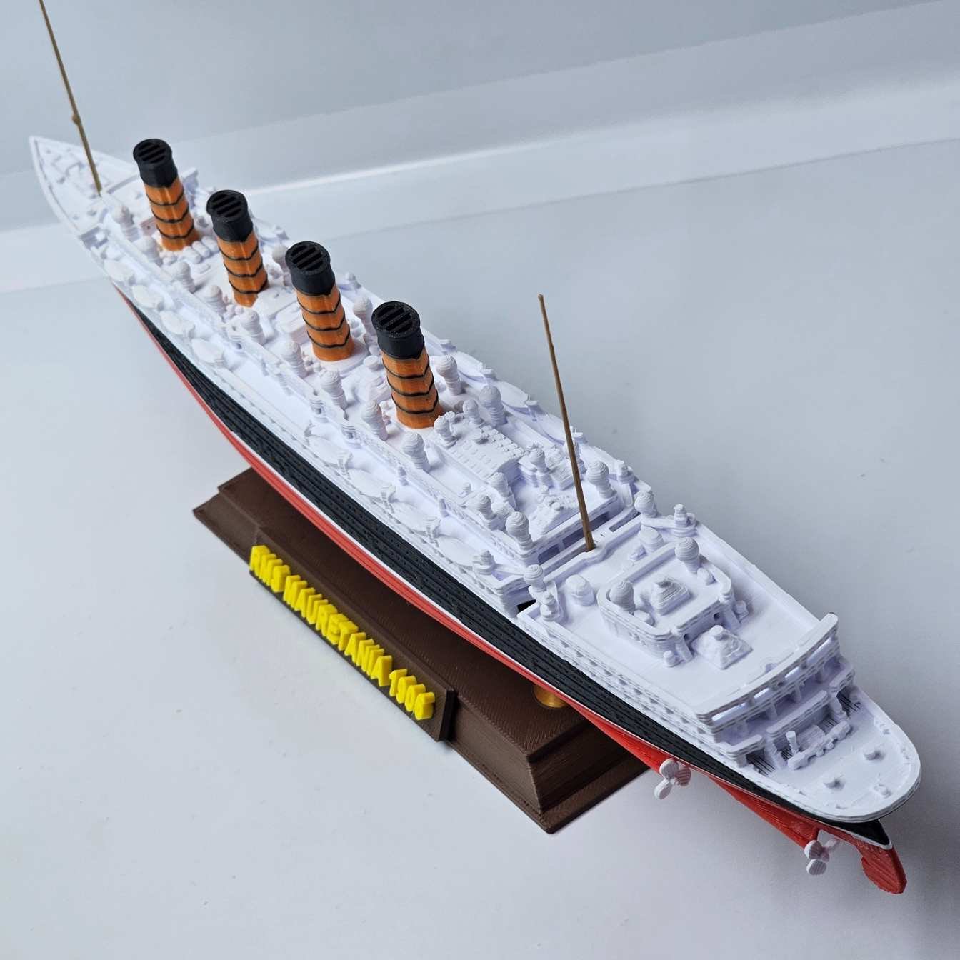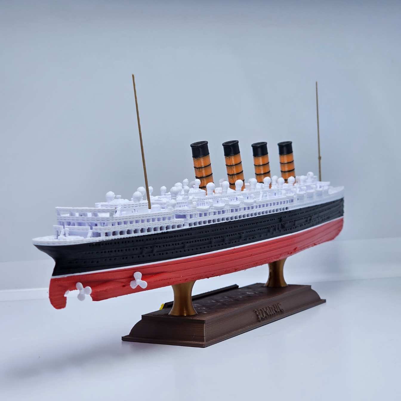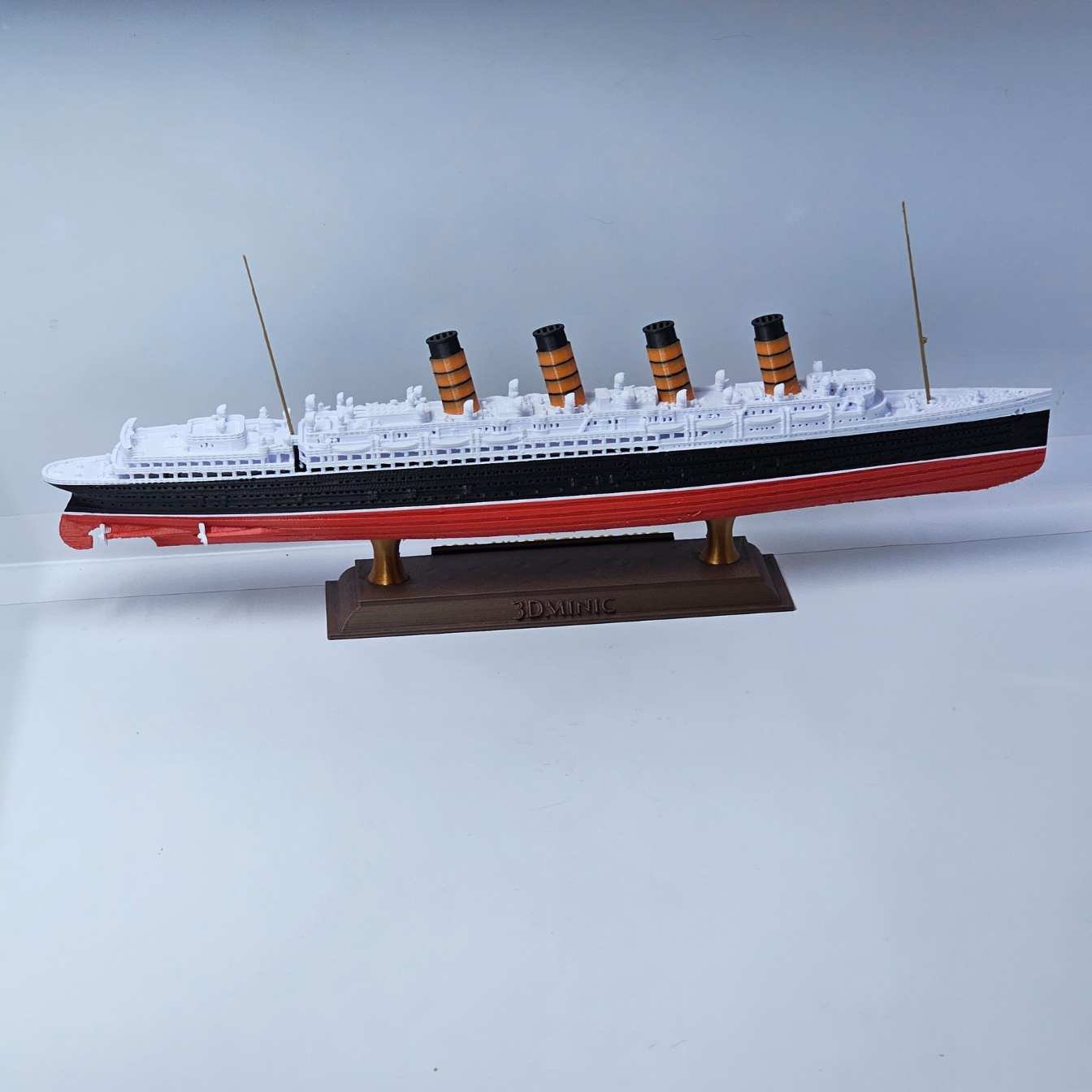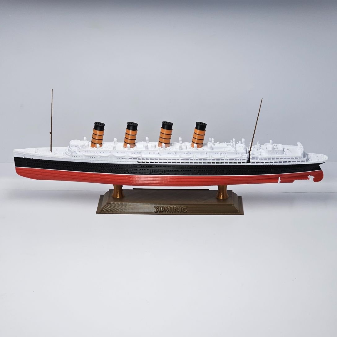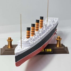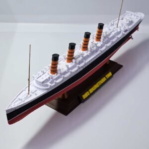 Produzido em plástico PLA de alta resistência, o modelo possui cores permanentes, sem pintura, garantindo durabilidade e evitando riscos de descascamento ou desbotamento. Um verdadeiro tributo em escala reduzida a um dos navios mais icônicos da história naval.