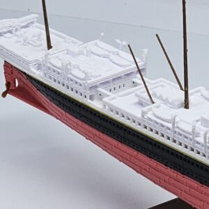 Produzido em plástico PLA de alta resistência, o modelo possui cores permanentes, sem pintura, garantindo maior durabilidade e fidelidade histórica. Uma peça que complementa qualquer coleção dedicada à era dourada dos transatlânticos.