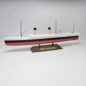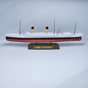 Esta miniatura em escala 1:750 com 28,5 cm de comprimento reproduz em detalhes a imponência do Oceanic, trazendo de volta à vida um dos mais icônicos navios da White Star Line.