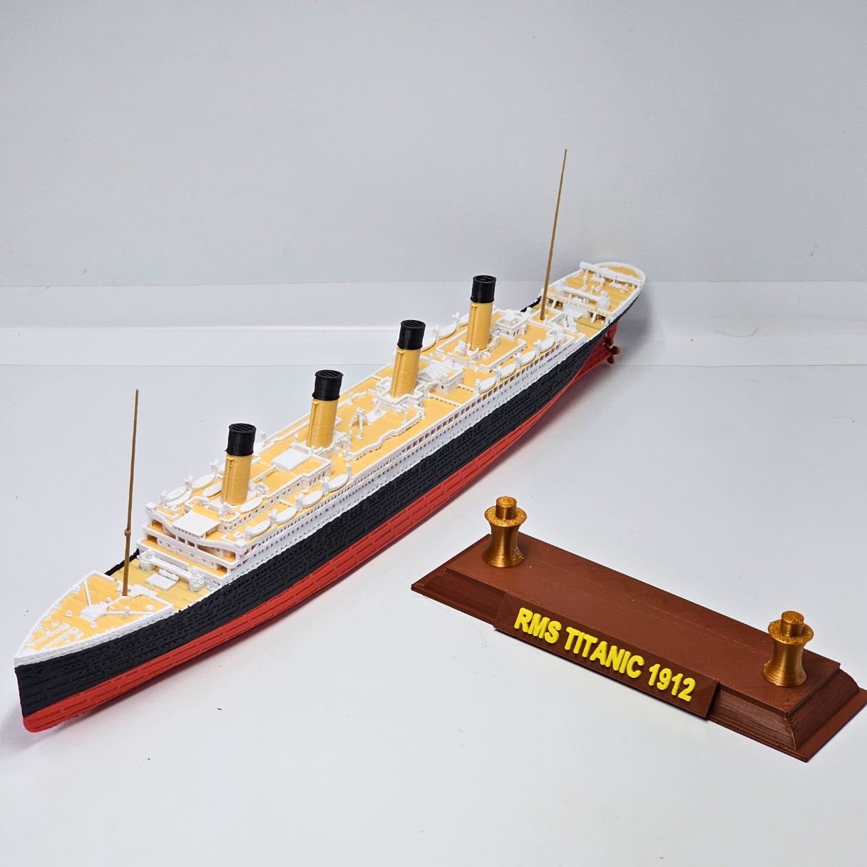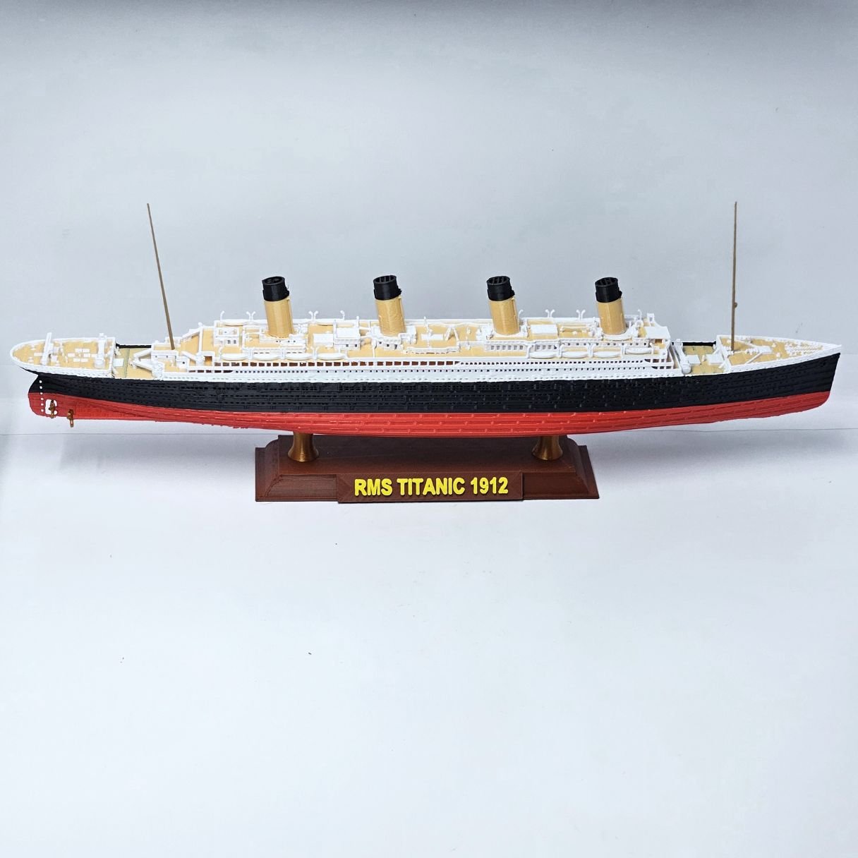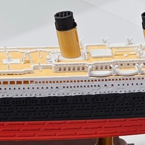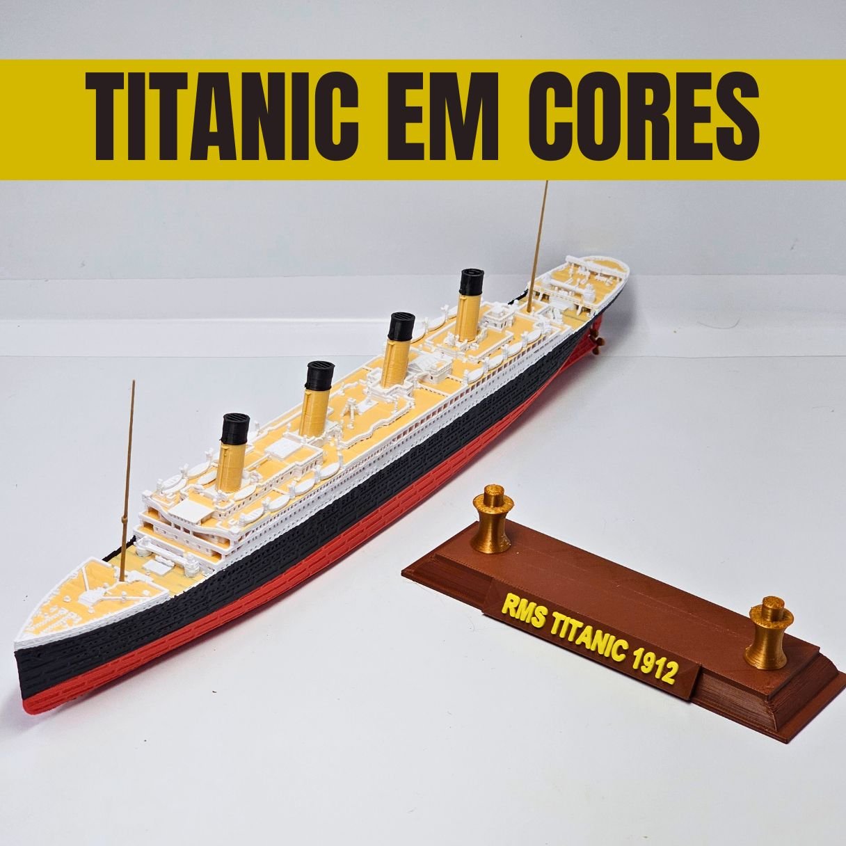 Apresentamos a nova versão do RMS Titanic COLORIDO em cores vibrantes e permanentes. O casco respeita a curvatura original e o convés possui um tom amadeirado, garantindo um nível superior de detalhes e sofisticação.