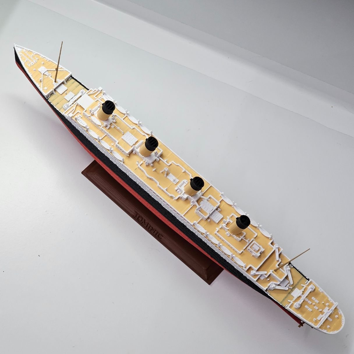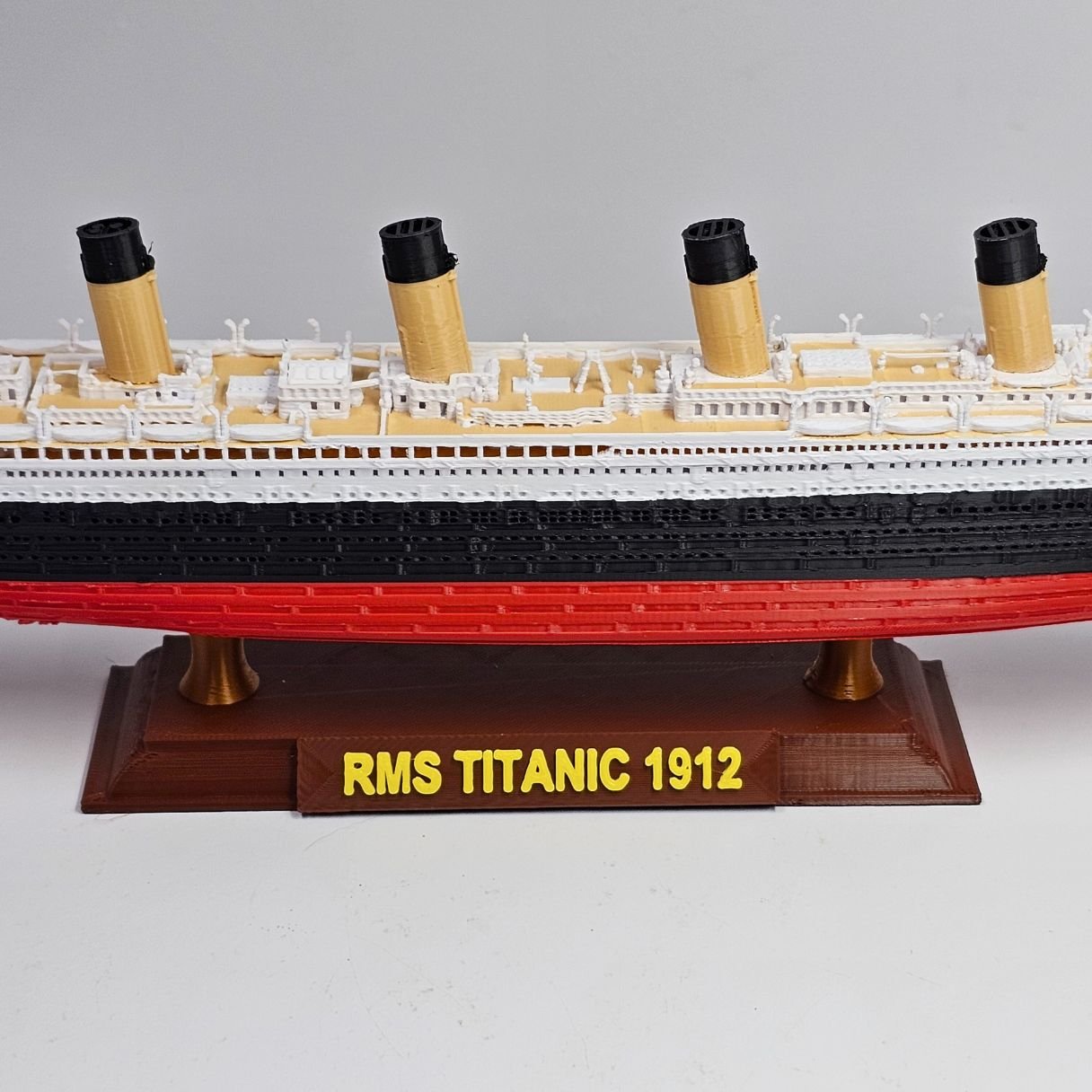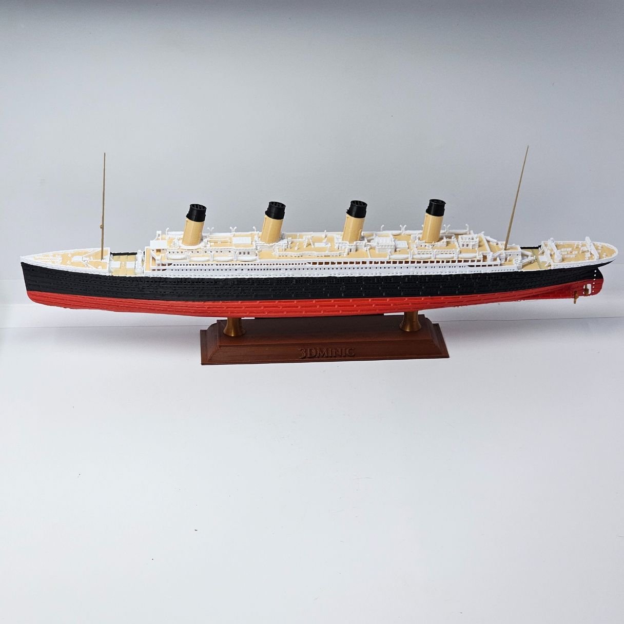 Apresentamos a nova versão do RMS Titanic COLORIDO em cores vibrantes e permanentes. O casco respeita a curvatura original e o convés possui um tom amadeirado, garantindo um nível superior de detalhes e sofisticação.