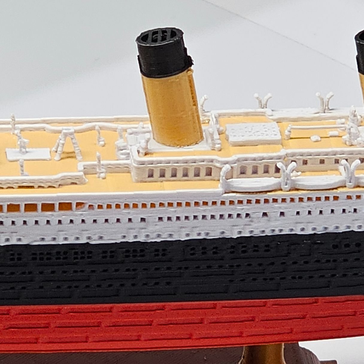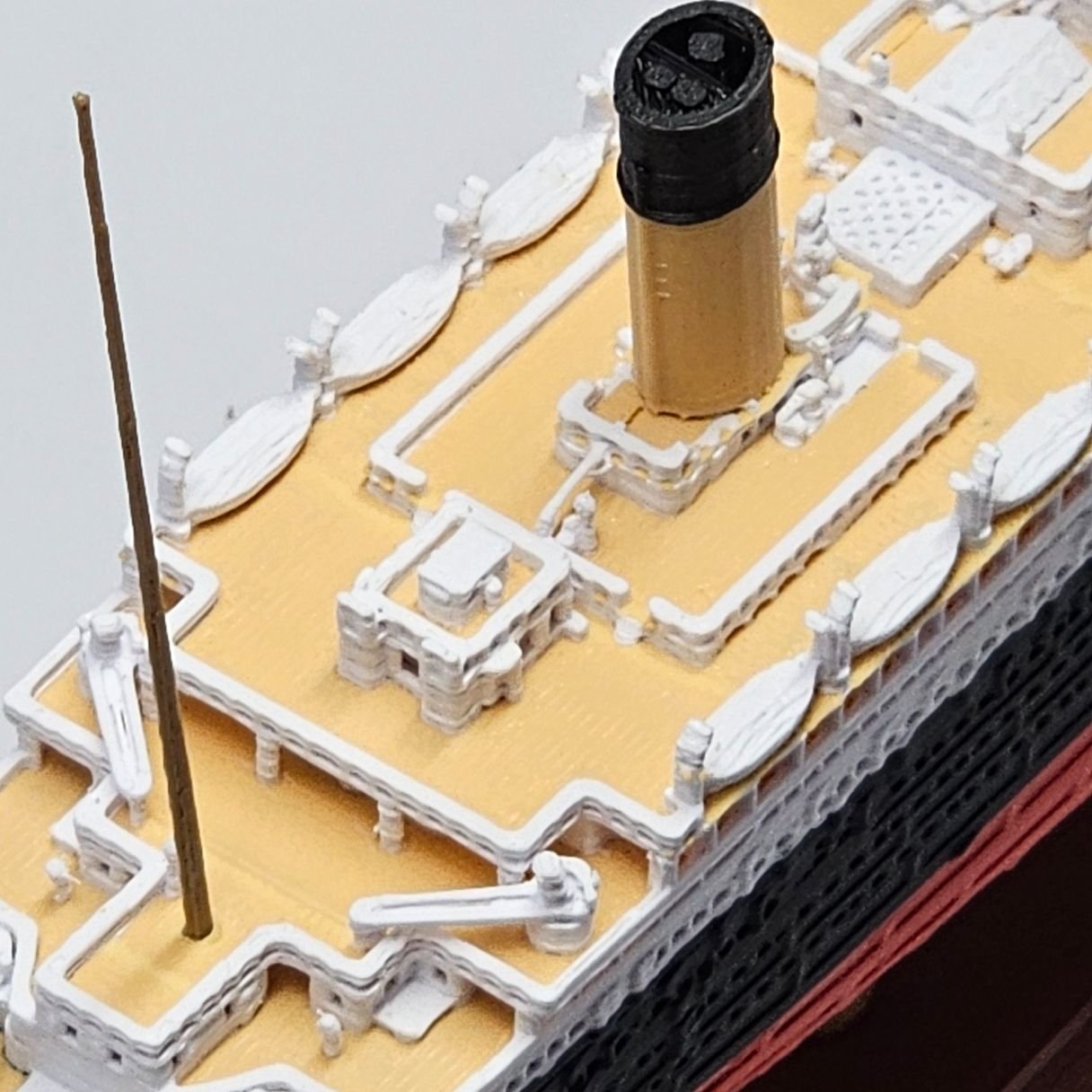 Detalhe Amadeirado: O convés é pintado em um tom amadeirado, elevando o nível de detalhe e sofisticação da peça e trazendo uma representação muito mais fiel da embarcação original.